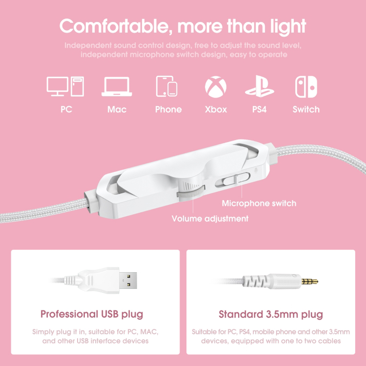 TAMAC D10 gaming headset with Cat’s ears steamed cat-ear shaped bread wired RGB lighting e-sports headset